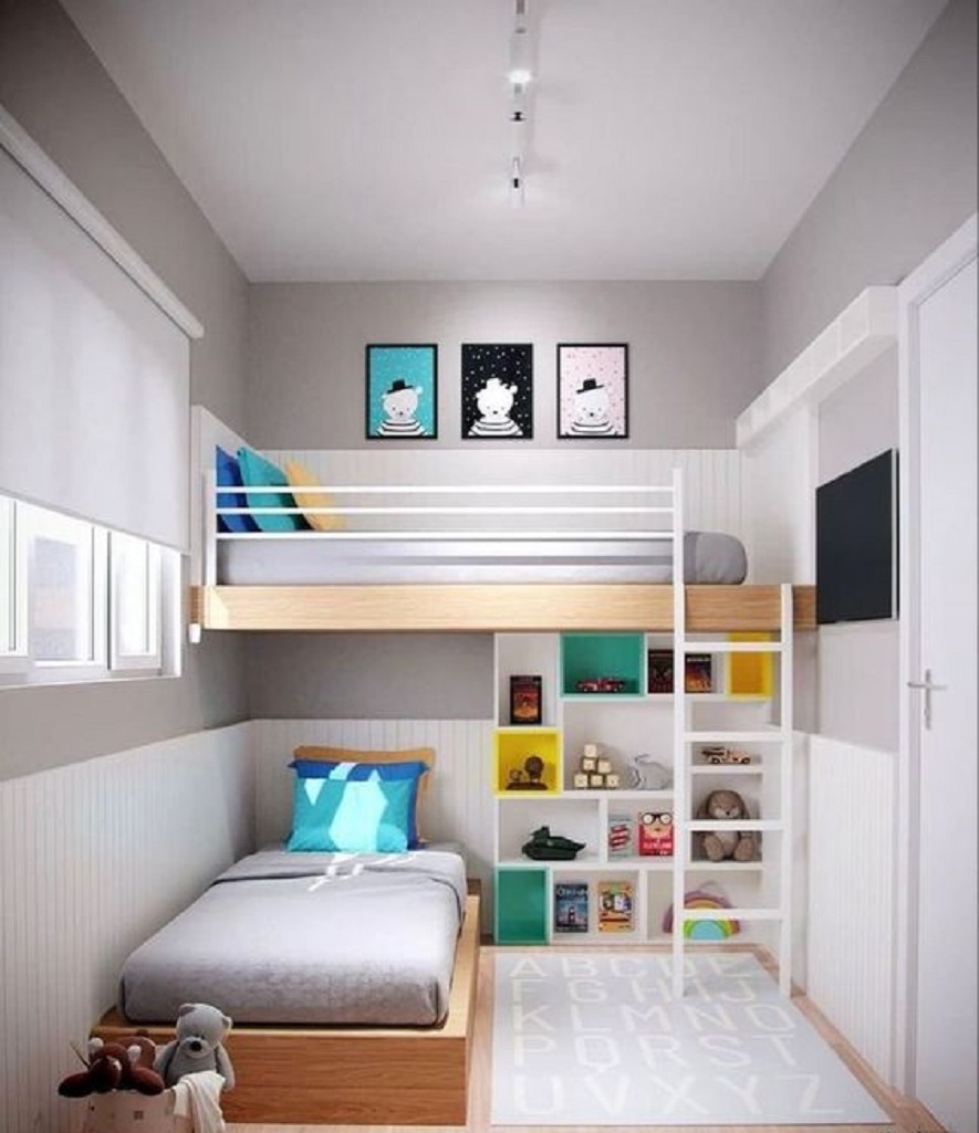 Nếu phòng ngủ dành cho trẻ em, giường tầng sẽ là lựa chọn tối ưu. Nó không chỉ tiết kiệm diện tích mà còn tạo ra không gian vui chơi cho trẻ.